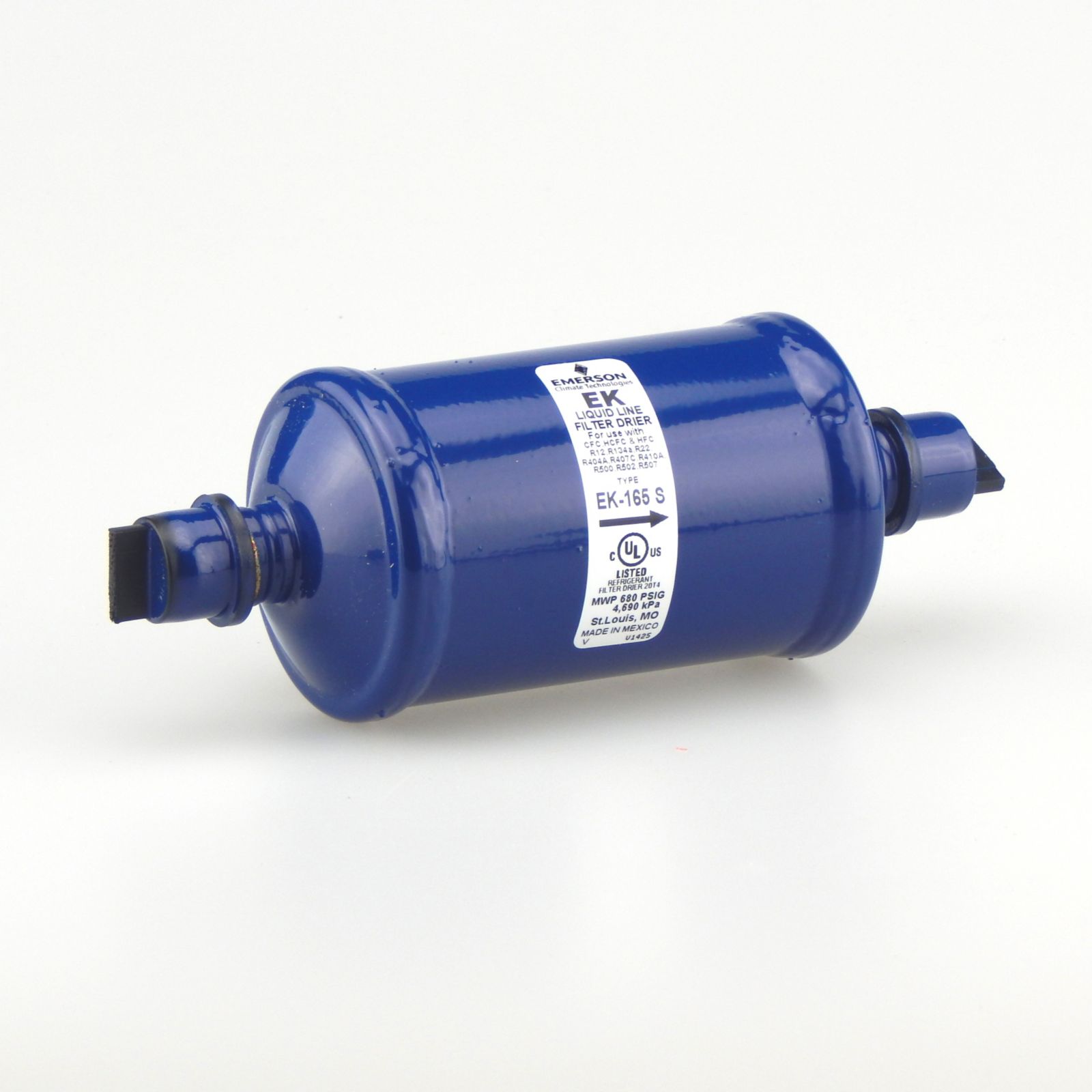 The ek is a premium universal replacement liquid line filter drier for cfc hcfc and hfc refrigerants including r 12 r 134a r 22 r 404a r 407c r 410a r 500 r 502 and r 507.